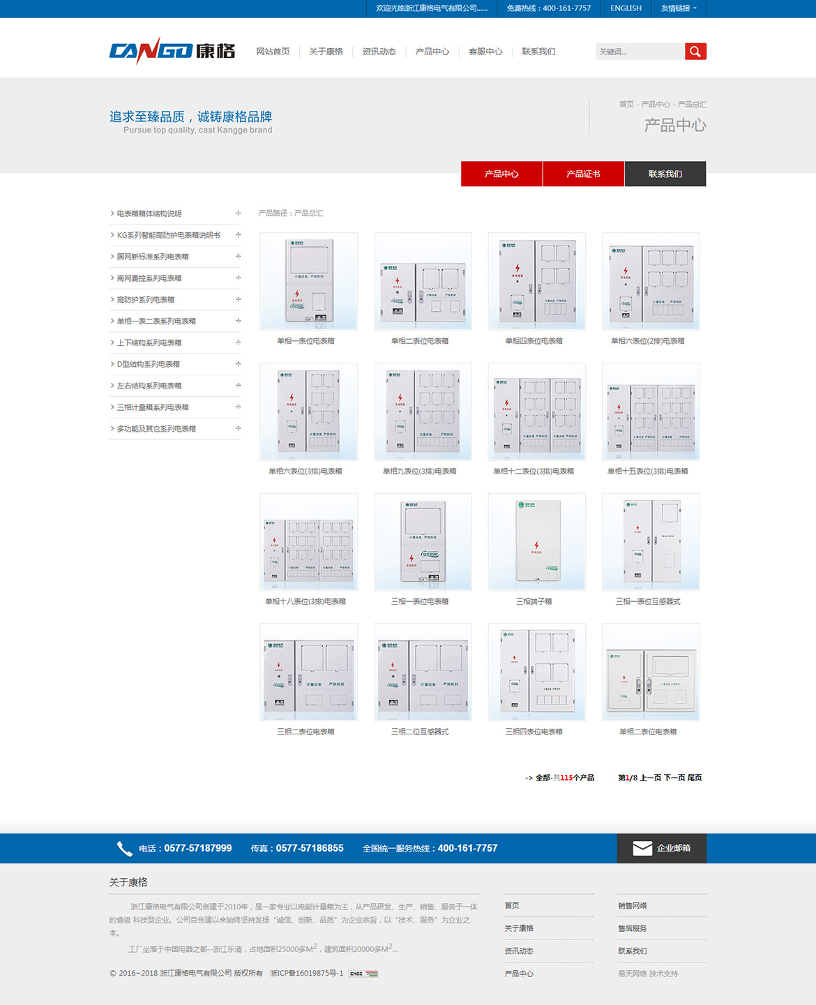 浙江康格電氣有限公司創(chuàng)建于2010年,是一家專業(yè)以電能計量箱為主,從產(chǎn)品研發(fā)、生產(chǎn)、銷售、服務于一體的省級 科技型企業(yè)。公司自創(chuàng)建以來始終堅持發(fā)揚“誠信、創(chuàng)新、品質(zhì)”為企業(yè)宗旨,以“技術、服務”為立業(yè)之本。
